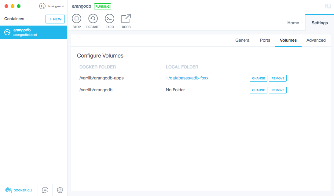 Kitematic allows me to get started with ArangoDB with really just one click. And changing settings like volumes is easy. Do you really need the UI…? Well, I’ve not decided yet.