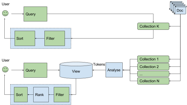 For the upcoming ArangoDB 3.4 release we’ve implemented a set of information retrieval features exposed via new database object `View`. The `View` object is meant to be treated as another data source accessible via AQL and the concept itself is pretty similar to a classical “materialized” view in SQL.