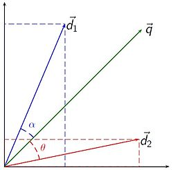 cos a = (d * q) / (|d| * |q|), where